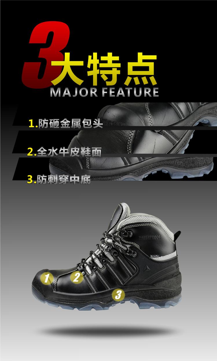 商品名稱:代爾塔 防水勞保鞋男 戶外工地高幫安.全鞋 防砸防靜電防穿刺防油防滑工作鞋 301911 黑色/棕色